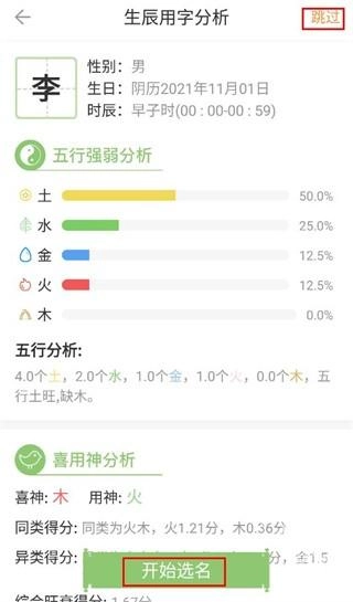 点击解名,输入自己或他人的名字,就能查看详细结果。