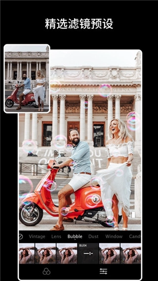 能够提前预览并查看当前图片的呈现效果,最新的滤镜资源也会清晰地展示出来。