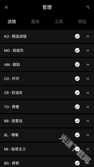 点击右下角的三个按钮,就能看到所有滤镜和一些工具。