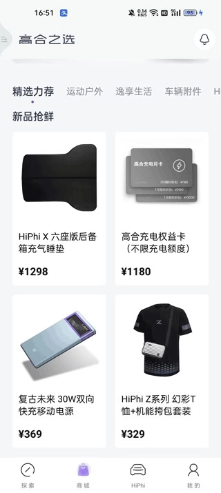 数字化商城“高合之选”,涵盖原厂配件、品牌精品与联名商品。用户可在线浏览商品、完成下单并追踪配送进度,旨在构建一站式的线上消费服务体系。