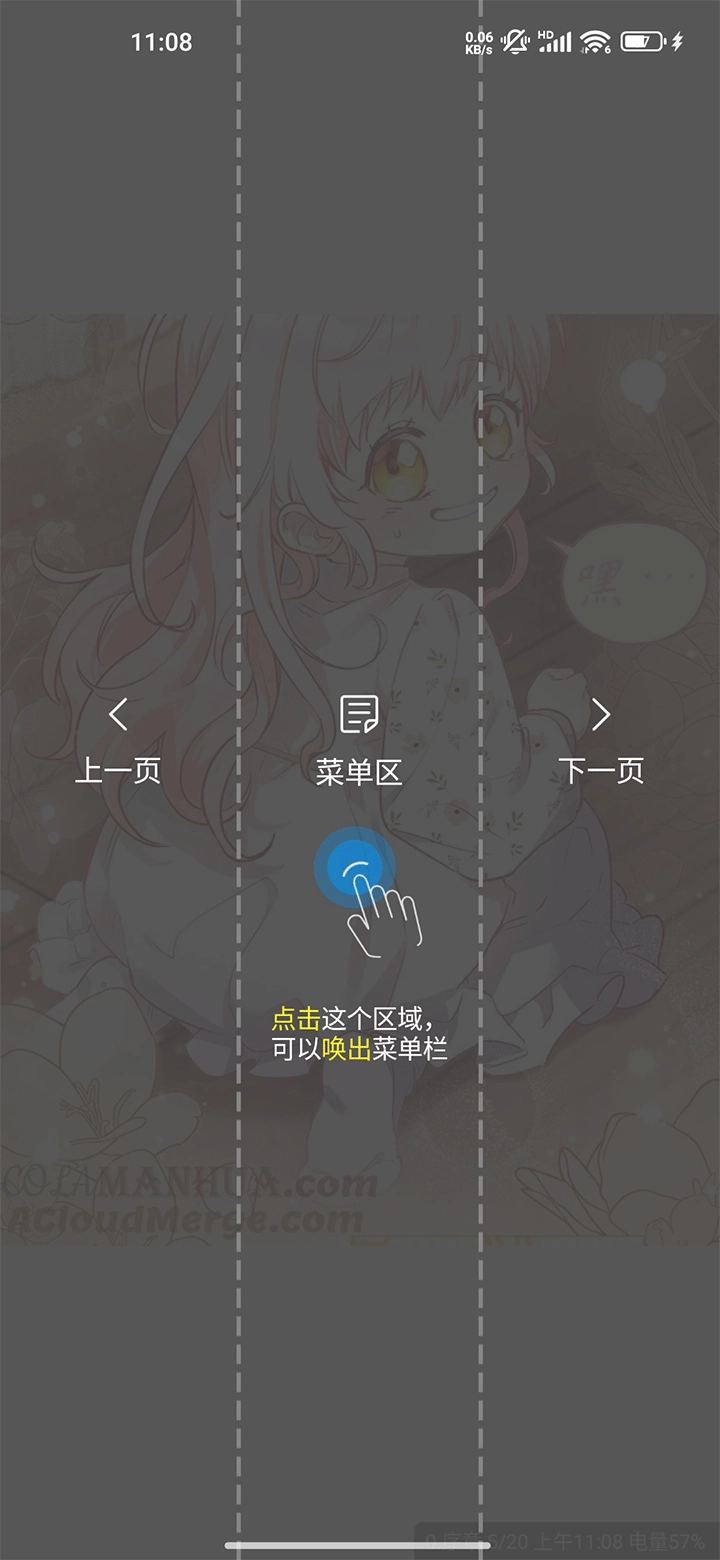 随意打开任意一部漫画的阅读页面,轻点页面中央就能调出菜单栏。