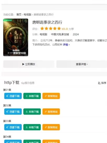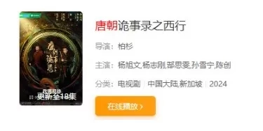 1. 开启速影TV软件,利用搜索等方式寻觅想看的电视剧,就拿《唐朝诡事录之西行》来说,找到后点击该影片的封面、名称或者在线播放按钮。