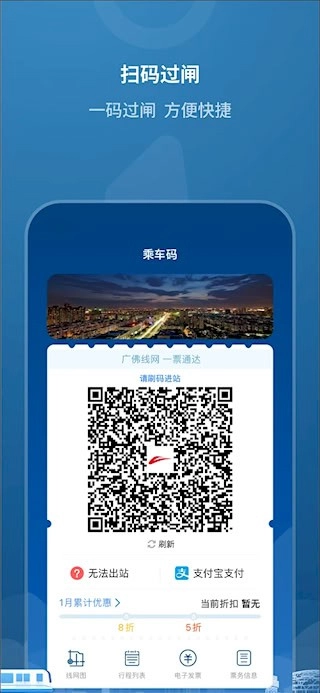 乘车码服务会生成动态二维码,用户可直接扫码通过地铁闸机,从而完成快速进出站,同时系统会实时记录行程产生的费用。