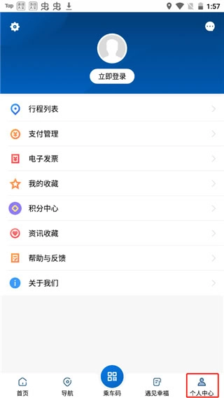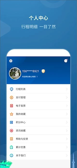 个人中心可集中管理出行历史记录、支付方式设置、电子发票申请、常用路线收藏以及积分兑换等个性化服务内容。