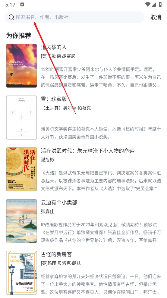 点击页面顶部的搜索框,输入书名、作者或出版社名称,就能开始阅读小说了。