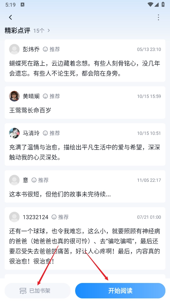 进入小说阅读详情页后,点击“开始阅读”按钮就能进入阅读界面,同时也可以选择点击加入书架。