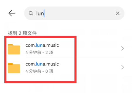 然后在里面搜索并打开“com.luna.music”文件夹。