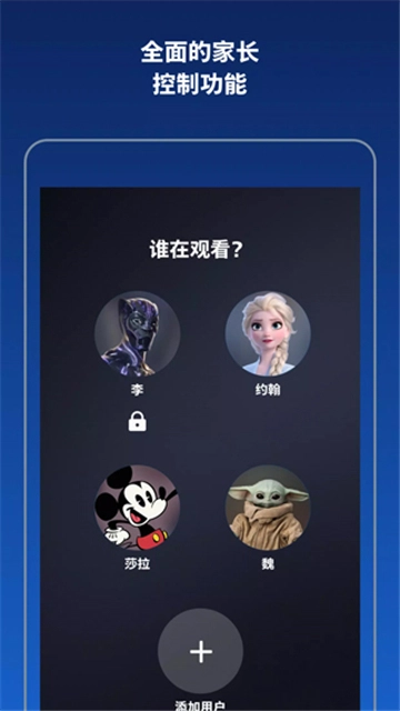 Disney+支持多用户档案功能,同一账户下的用户可以登录各自的档案观看内容,无需担心个人偏好设置和观看记录被干扰。此外,你还能为孩子创建儿童专属档案,开启后孩子只能浏览适合其年龄的儿童内容,不会接触到成人向内容。