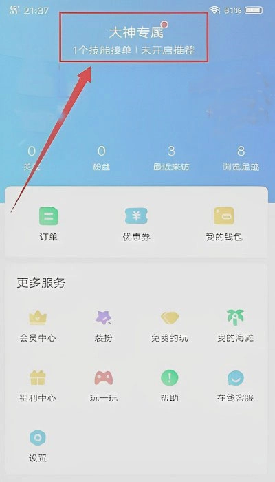 当你成为大神后,就能在页面上方的“大神专属”板块里开启技能接单功能了。