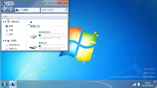 经典界面:Win7Simu还原了Windows 7的操作环境,涵盖个性化的窗口样式与交互方式,让用户得以重温这款经典操作系统的使用感受。
