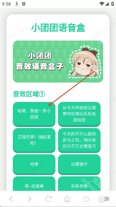 小团团语音盒是一款超有趣的安卓免费语音包工具。打开应用后,首页就能看到“一只小团团”的各类语音包,每个都配有详细的文字说明,点击即可直接播放音效。无论是和好友聊天,还是联机玩游戏,都能用小团团语音盒最新版里的语音来逗乐整蛊对方!