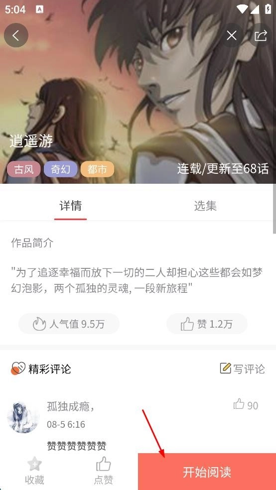 点击已选中的漫画,进入其详情页面后,可查看作品简介、人气值等相关信息,接着点击“开始阅读”,便能沉浸于漫画内容之中。