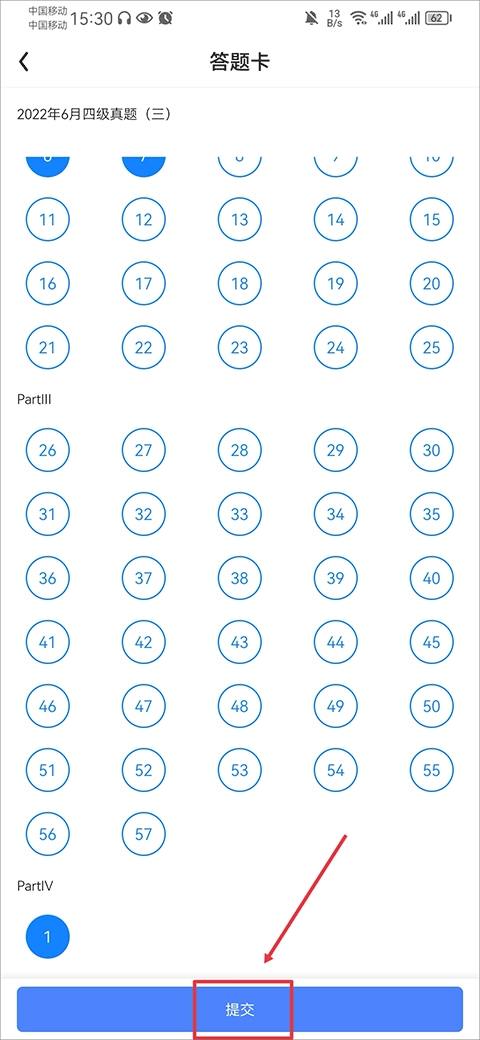 在智能模考中选择四级或者六级的真题进行答题