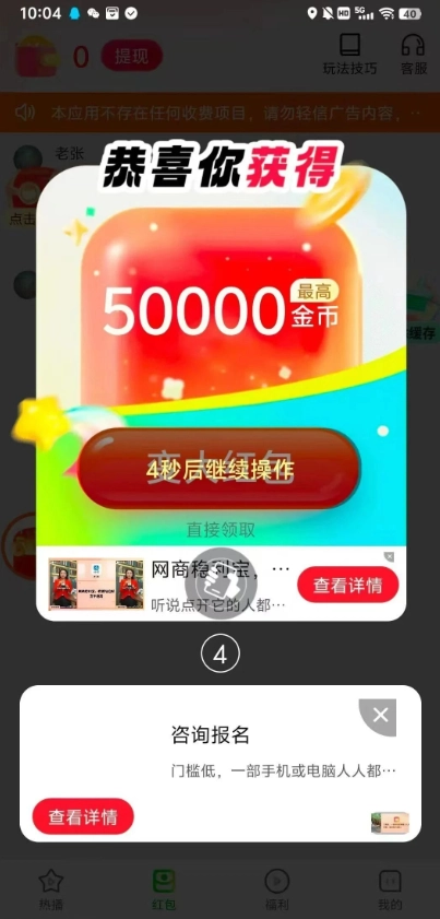 看广告领奖励的入口就在底部的热播区域,点击进去就能获取奖励啦