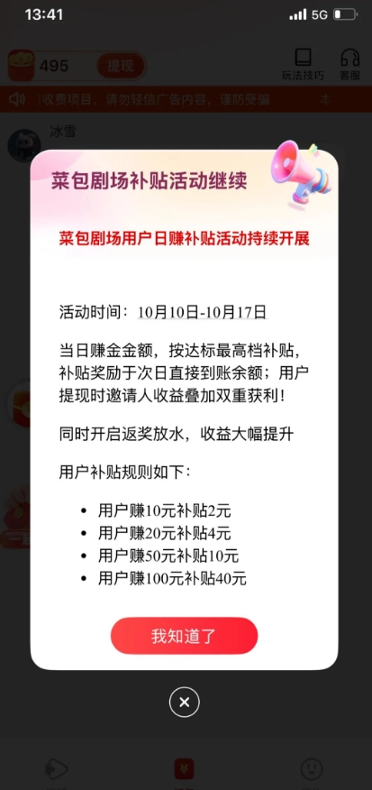 菜包剧场欢乐版也叫菜包剧场赚钱,是一款通过广告盈利的软件。如今看广告的竞争都这么激烈了,这款软件的核心功能是免费观看短剧以及通过看广告获取金币。平台内的短剧资源无需过多赘述,值得关注的是它的金币机制:观看短剧时能拆红包,每日签到也可领取金币,新人登录后还能享受专属的新人福利。