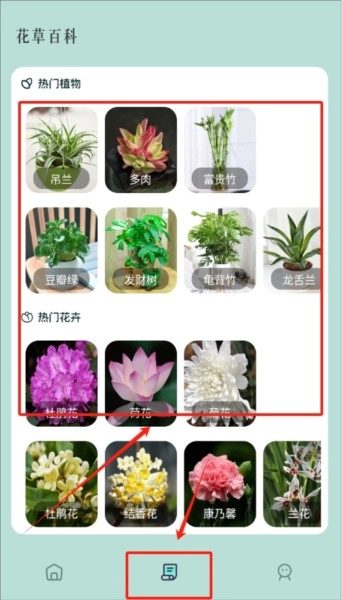 进入花草百科页面后,映入眼帘的是各式各样植物的高清图片,让人目不暇接。