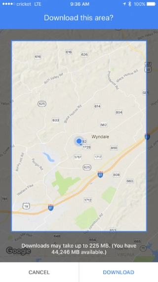 移动此框,使其覆盖你希望保存下来以便离线使用的区域。你也可以通过放大或缩小操作,来调整想要保存的区域范围大小。