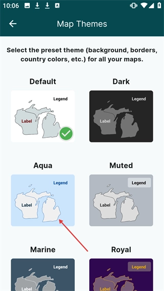 选择【Aqua】主题可将地图切换为水蓝色风格。