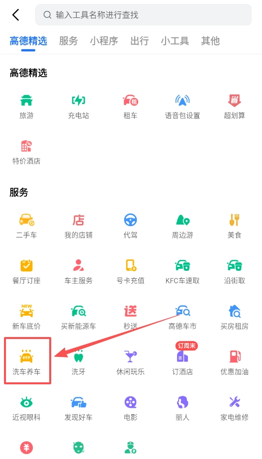 首先打开高德地图应用,进入首页后点击【手车互联】选项。