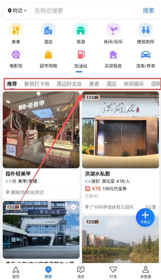 可以多留意附近页面的团购推荐,那里常有评分不错的特色店铺,像本地私房菜这类,不妨看看人均消费和已售券的数量。