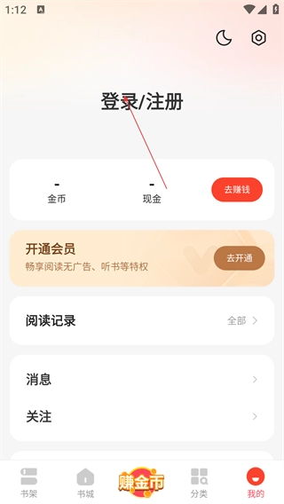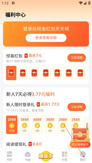 打开浩阅小说应用后,点击底部导航栏中的【我的】选项,即可进入个人中心页面,在该页面中可以看到福利、登录等功能入口。