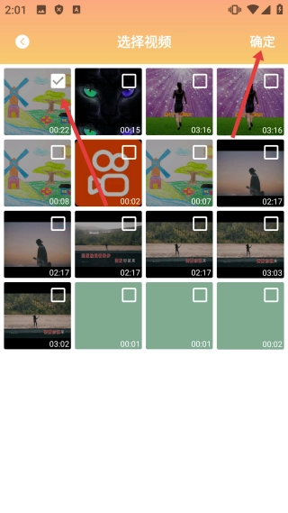 在视频选择界面中,先找到并点击【选择要旋转的视频】,接着点击【确定】按钮,即可进入视频旋转界面。