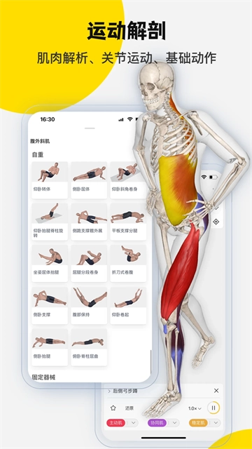 包含人体的全部解构系统,同时还提供英语发音、文字注释等相关内容。