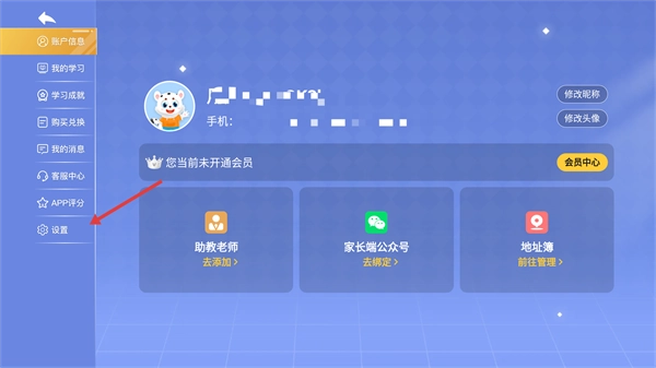 在个人页面左侧菜单栏找到【设置】。