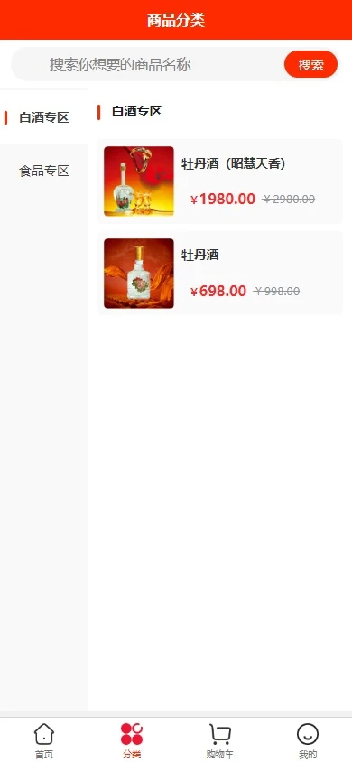 安装,进入首页,这里可以随时搜索需要的商品;