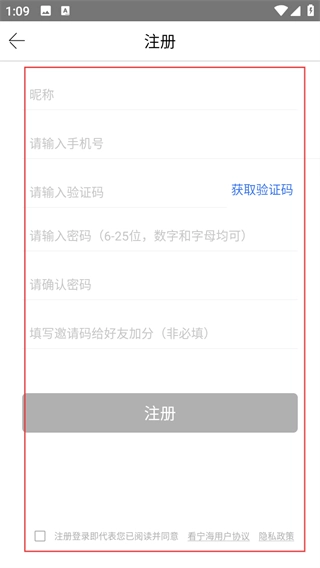 在注册页面,按顺序填写各项信息,勾选相关协议后点击注册按钮,即可完成注册流程。