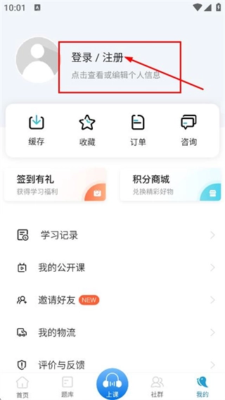 在个人中心页面,点击登录注册按钮,即可进入登录与注册页面。