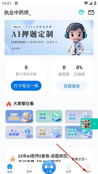 在执业中药师页面,点击底部的“我的”选项,即可进入个人中心页面。