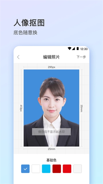 它还具备专业的底色更换功能,让用户无需出门就能拍摄出专业水准的证件照。