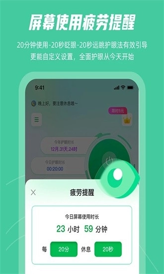 支持记录年度、每日等多维度的护眼时长,能够自定义屏保时间,提供多个护眼模式主题,实现全方位的视觉保护。