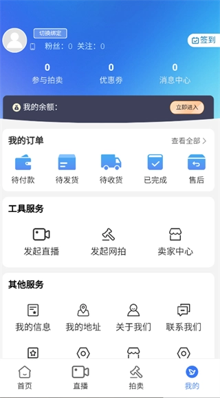 点击页面下方的“我的”选项,就能查看我的订单、工具服务等相关功能。