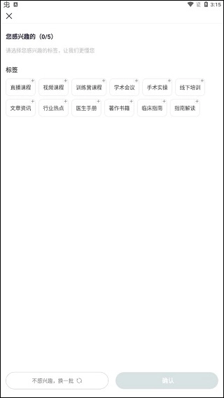 您可以挑选自己感兴趣的标签,正如您所看到的,标签的分类各有差异,主要涵盖直播课程、视频课程、训练营课程、学术会议、手术实操、线下培训、文章资讯、行业热点、医生手册、著作书籍、临床指南、指南解读等类别!