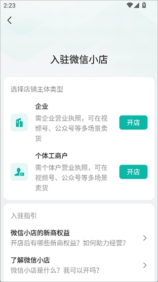 你可以在本站免费获取微信小店助手,将其安装到手机后打开,就能看到微信小店的入驻开通渠道了。