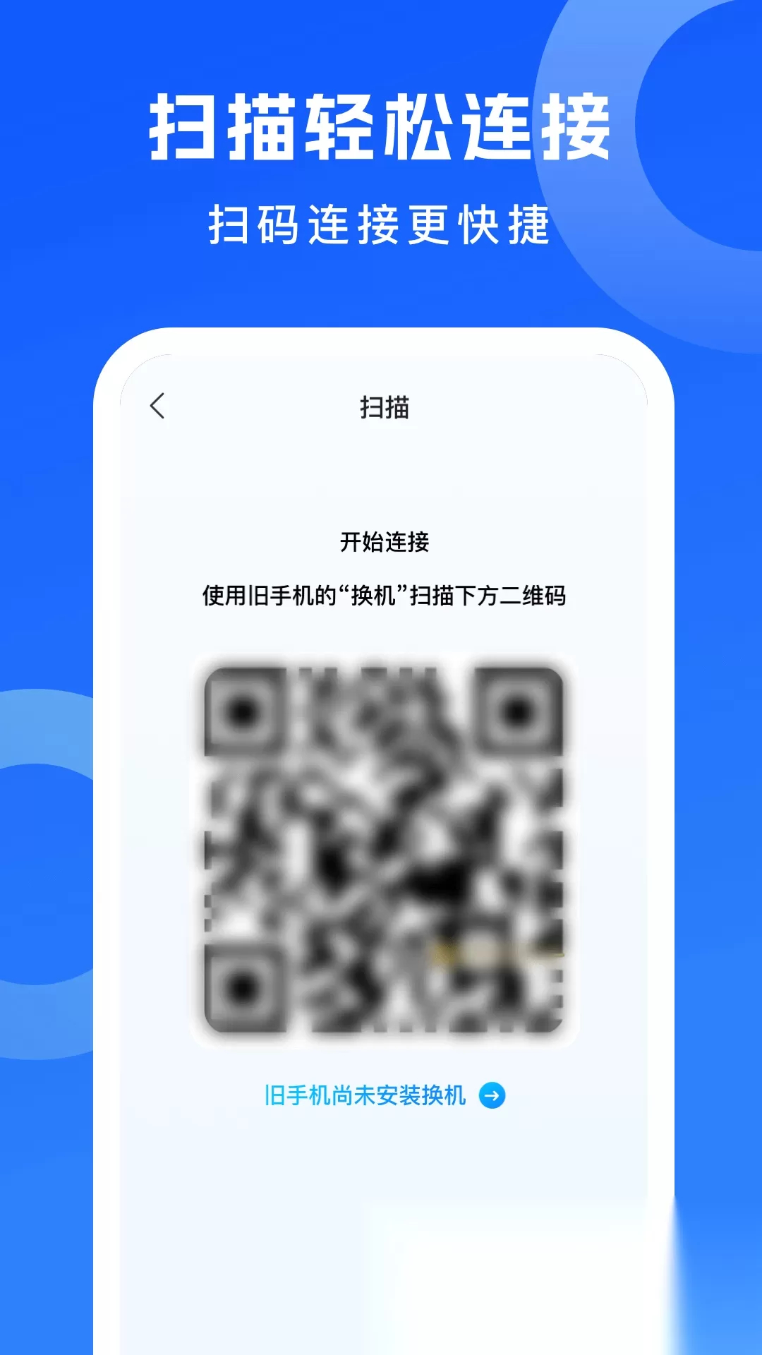 2)轻扫二维码,建立连接用旧手机扫描新手机上出现的二维码,即新旧手机连接成功。