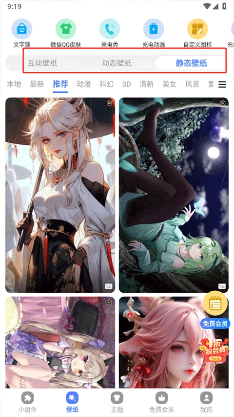在壁纸页面里挑选一张你心仪的互动壁纸、动态壁纸或者静态壁纸