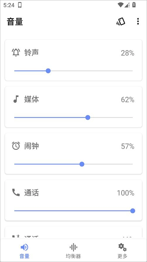 音量君是一款多功能手机音量调节工具,支持手机铃声、媒体、闹钟、通话等多种音量调节。不管是手机音量键出现故障,还是想要对音量进行微调、提升音质,它都能轻松应对。此外,它还具备EQ均衡器、响度控制、预设混响、音频均衡等多种功能设置,让你可以轻松打造出独特的音效体验。同时,音量君的用户界面简约清爽,还提供了多种主题选择,能够满足用户的不同喜好需求。有需要的朋友可以在本站使用~