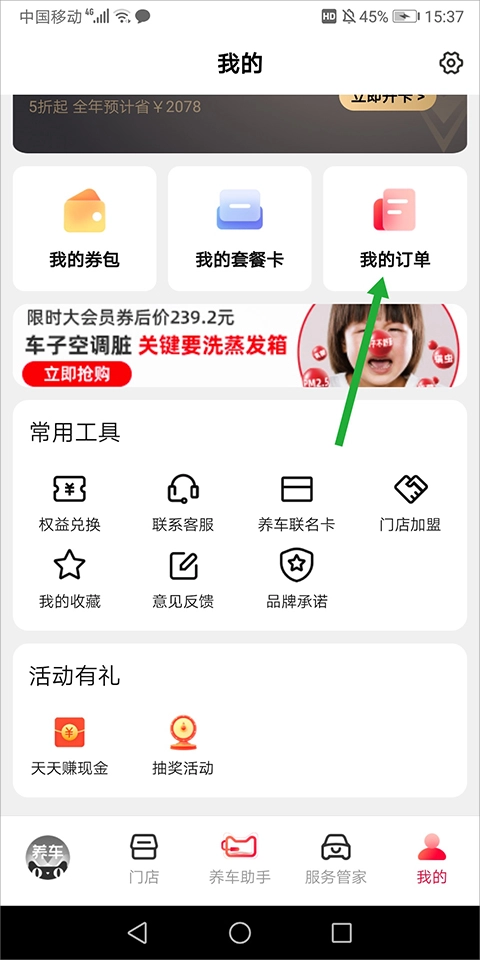 进入天猫养车【我的】页面后点击【我的订单】