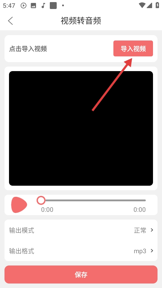 进入【视频转音频】界面后,点击【导入视频】按钮即可开启视频导入的流程。