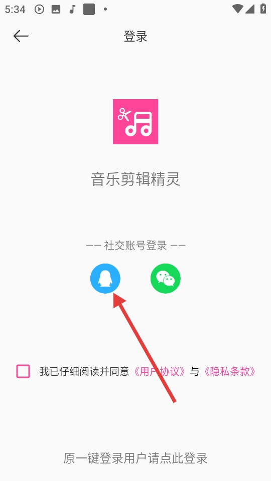 在登录页面点击蓝色QQ图标进行社交账号登录。