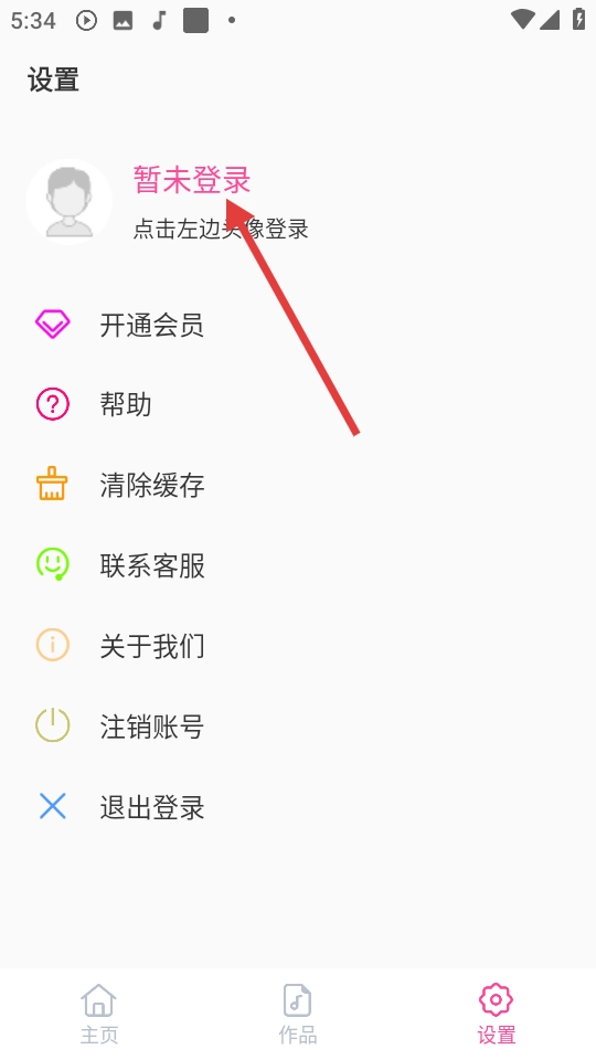 在设置页面,点击【暂未登录】区域左侧的头像,即可进入登录页面。