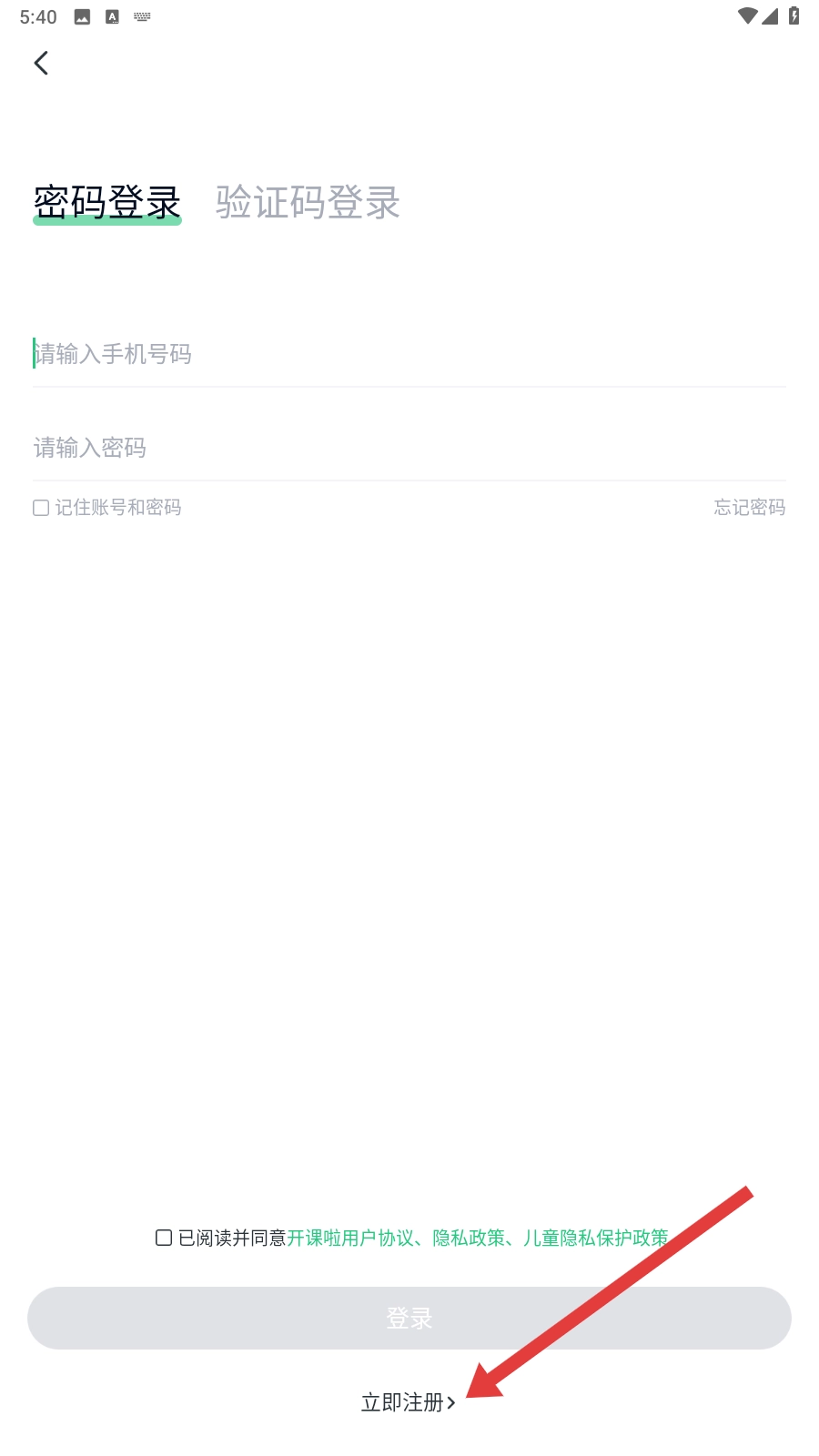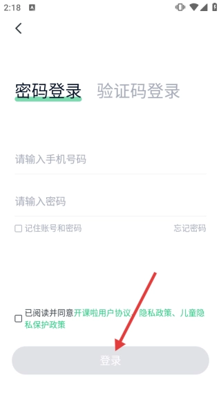 选择密码/验证码登录方式,填写手机号和密码,勾选相关协议后点击【登录】按钮,即可完成账号登录操作。
