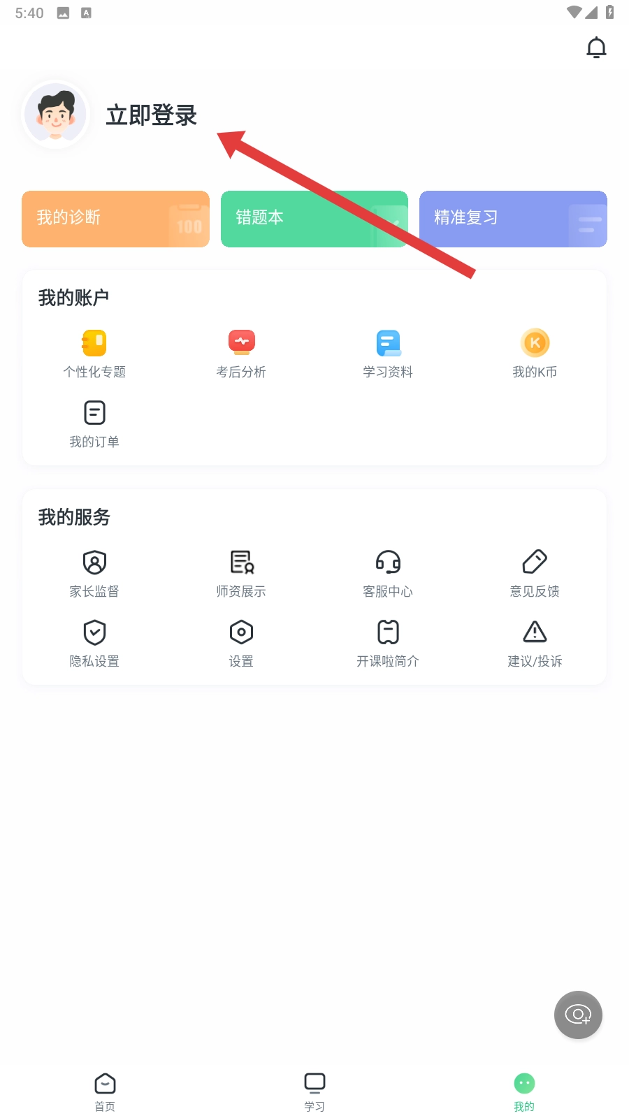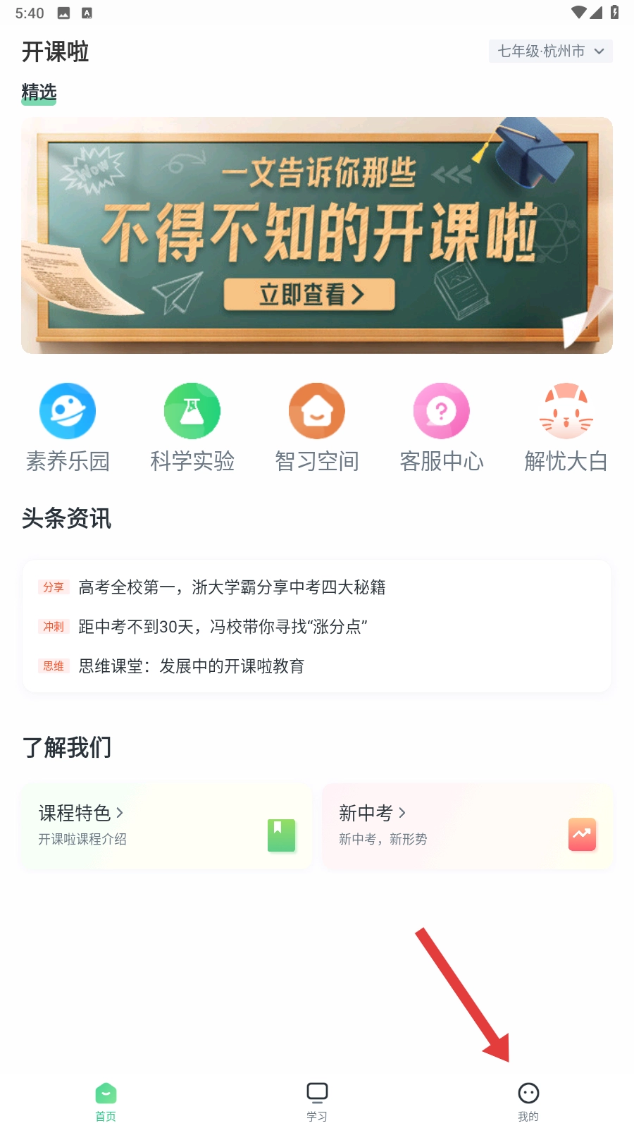 打开开课啦,在首页点击右下角的【我的】按钮,就能进入个人页面啦。
