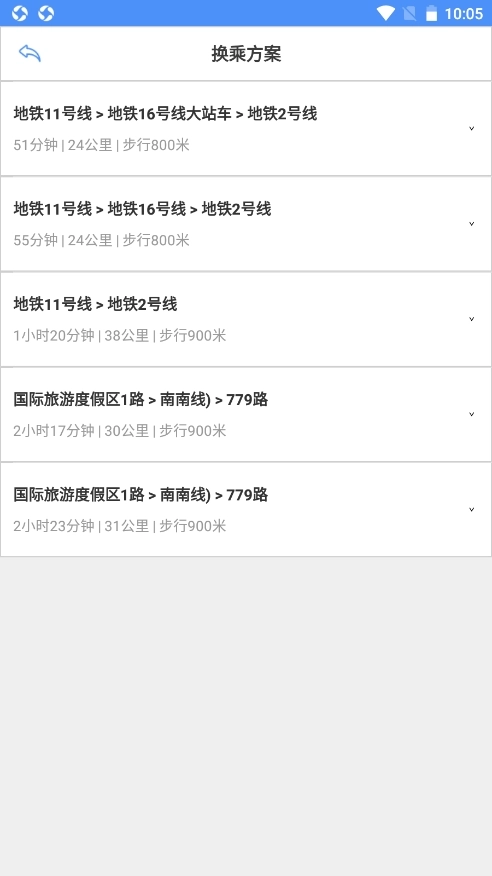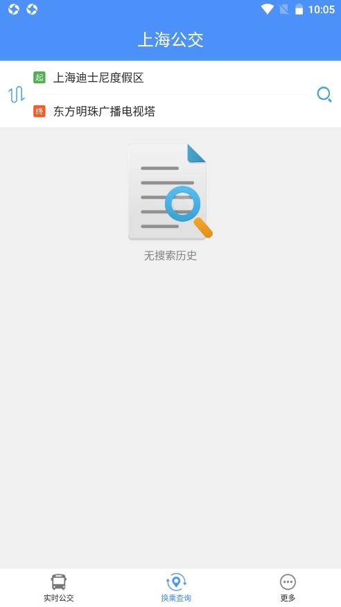 还能进行换乘查询,例如从迪士尼度假区前往东方明珠,只需点击旁边的放大镜图标即可。