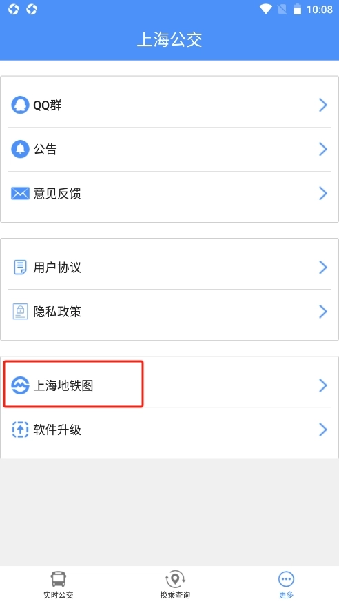 另外,这款软件的功能不止于查询公交线路,还能查看上海地铁图。具体操作是点击下方功能栏里的【更多】选项,接着再点击【上海地铁图】就可以了。