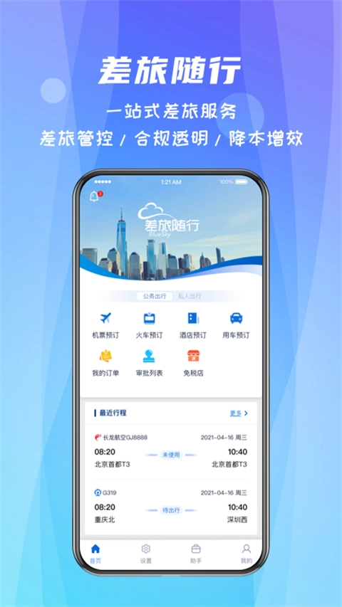 差旅随行是一款面向商务人士开发的差旅管理移动应用,整合了行程规划、预订、审批、报销等全流程差旅服务,致力于为企业和个人提供一站式、高效便捷的差旅解决方案,助力用户轻松管理每次出行,提高差旅效率,减少差旅成本。