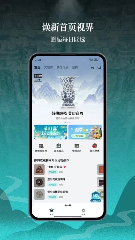 陈列所有的每日精品文物,了解华夏上下5000年的厚重。